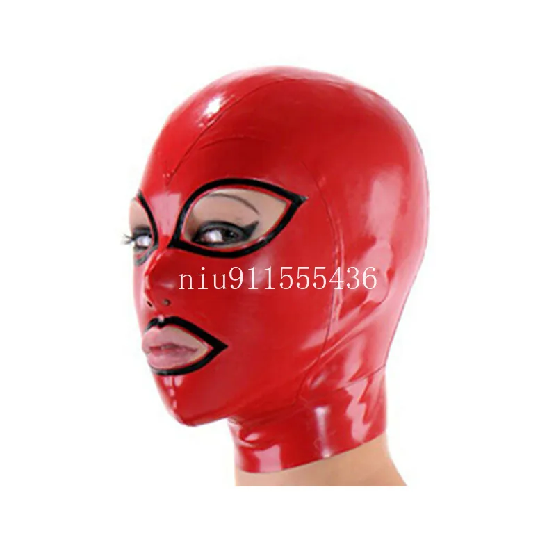 Красная латексная маска, вечерняя одежда, фетиш, резиновый капюшон, молния сзади, боди, косплей, Хэллоуин