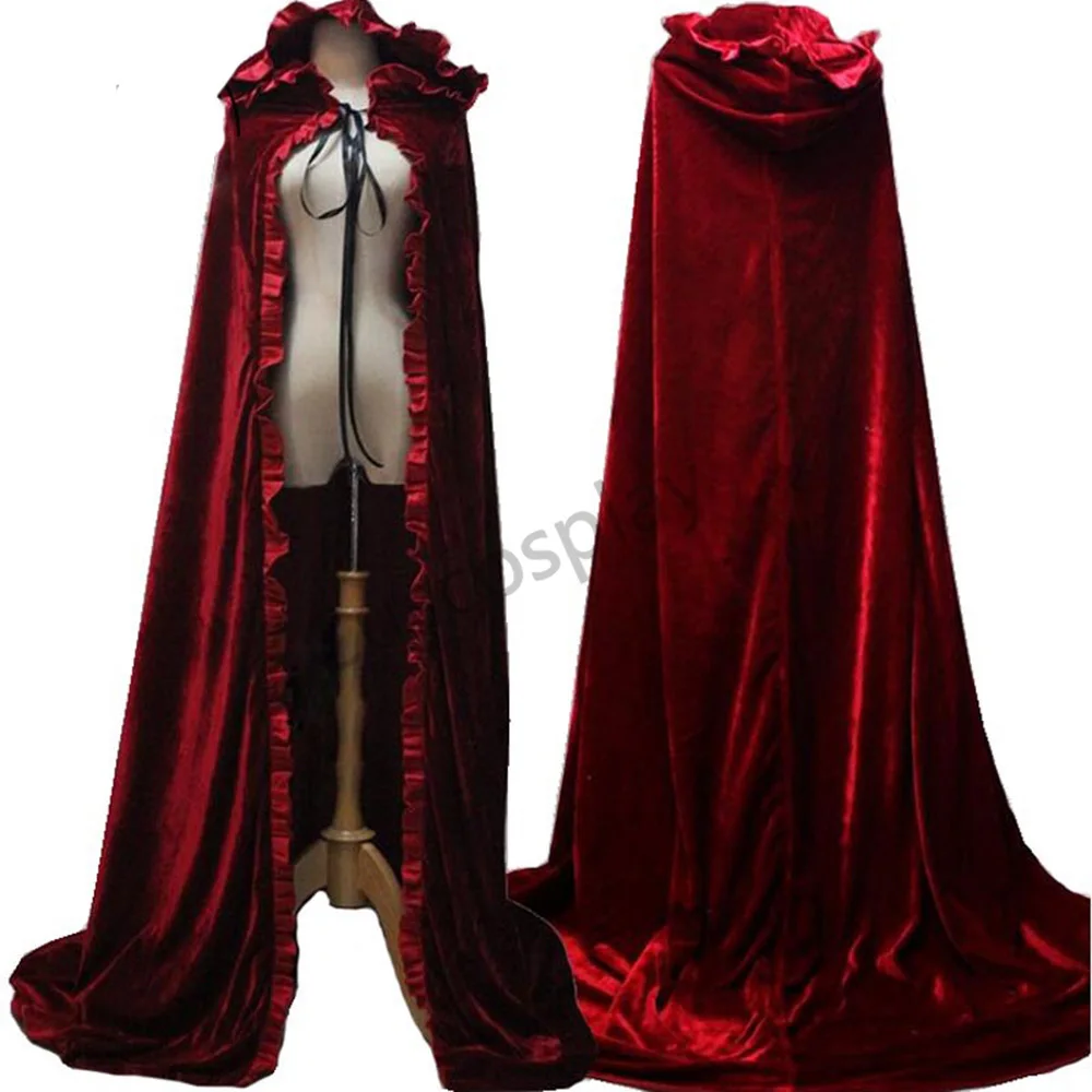 Красная накидка с капюшоном, длинная красная накидка для взрослых женщин, зимняя накидка принцессы для косплея, костюм для Хэллоуина, карна...