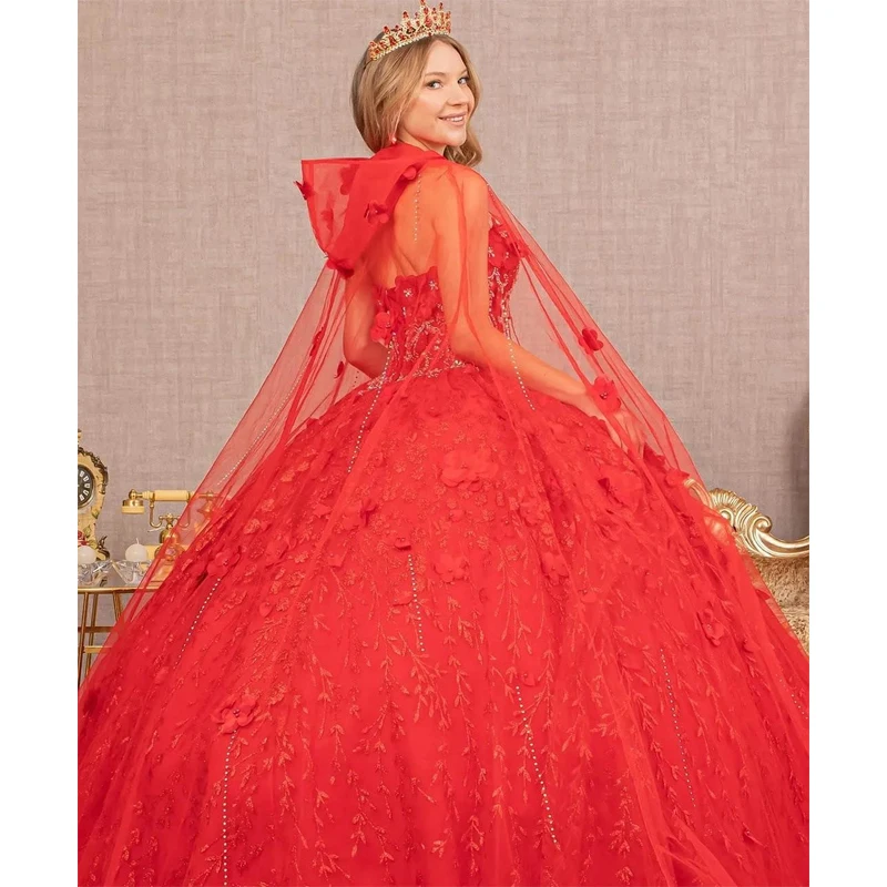 Красное мексиканское платье 15 лет Charro Quinceanera платья с накидкой 3DFlower кружева Applqiued корсет милое платье 16 Abiti Da