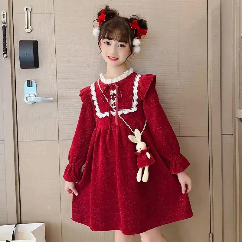 Красное новогоднее платье принцессы для девочек - модная юбка в зимнем стиле с небольшим ароматом 160 cm красный