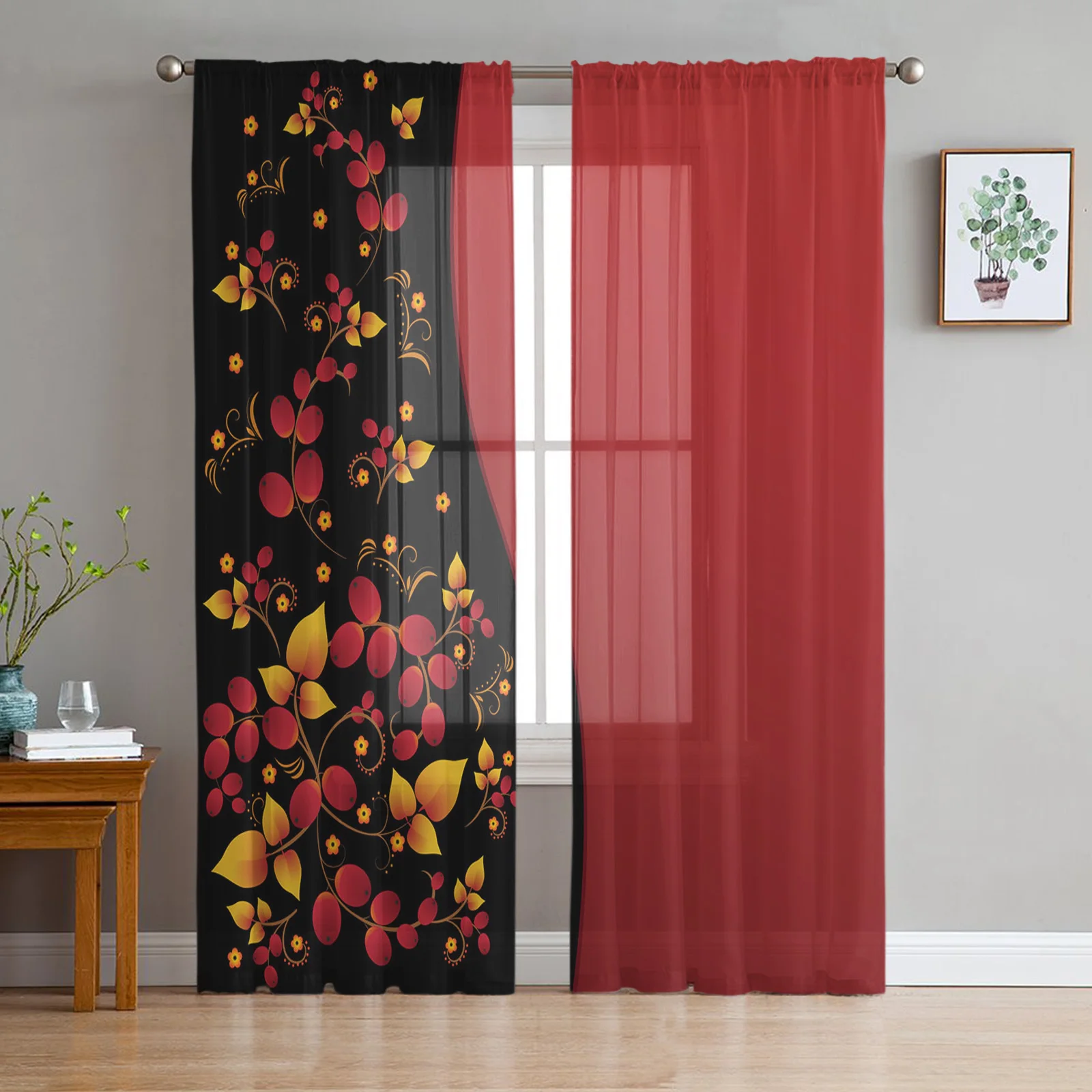 Красные прозрачные Занавески с бабочками и опавшими листьями для гостиной, спальни, кухни, украшение для окна, занавески из органзы и тюля