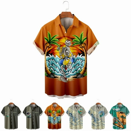 LANLIN Hawaii Toddler Boys Button Up Tops Shirt with Chest Pocket Funky Clothes Size 100-170/XXS-8XL