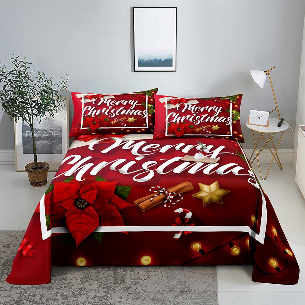 Красный Рождественский 0.9/1.2/1.5/1.8/2.0m Цифровая Печать Полиэстер Простыня Плоская С Наволочкой Комплект Постельных Принадлежностей С Принтом 150X230cm(2Pcs)