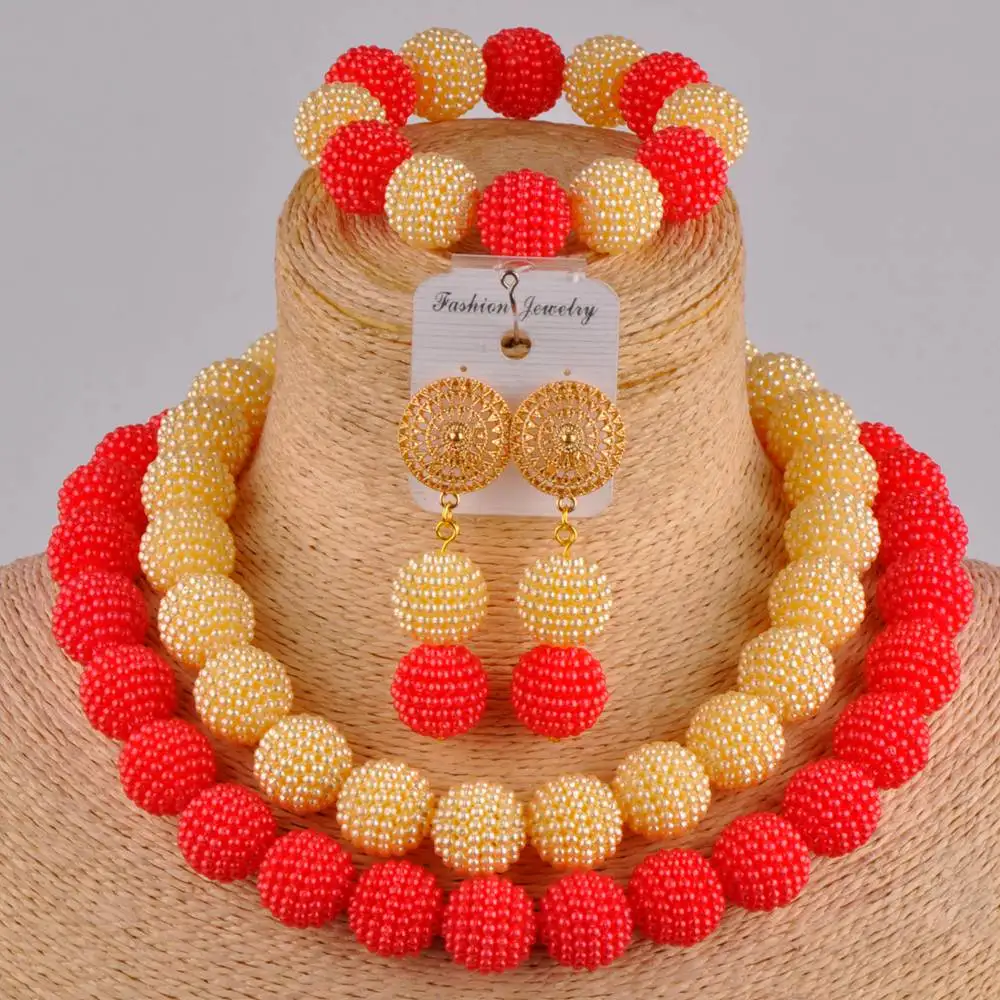 Красный и шампанское золото, Африканские свадебные бусины, нигерийский набор FZZ106