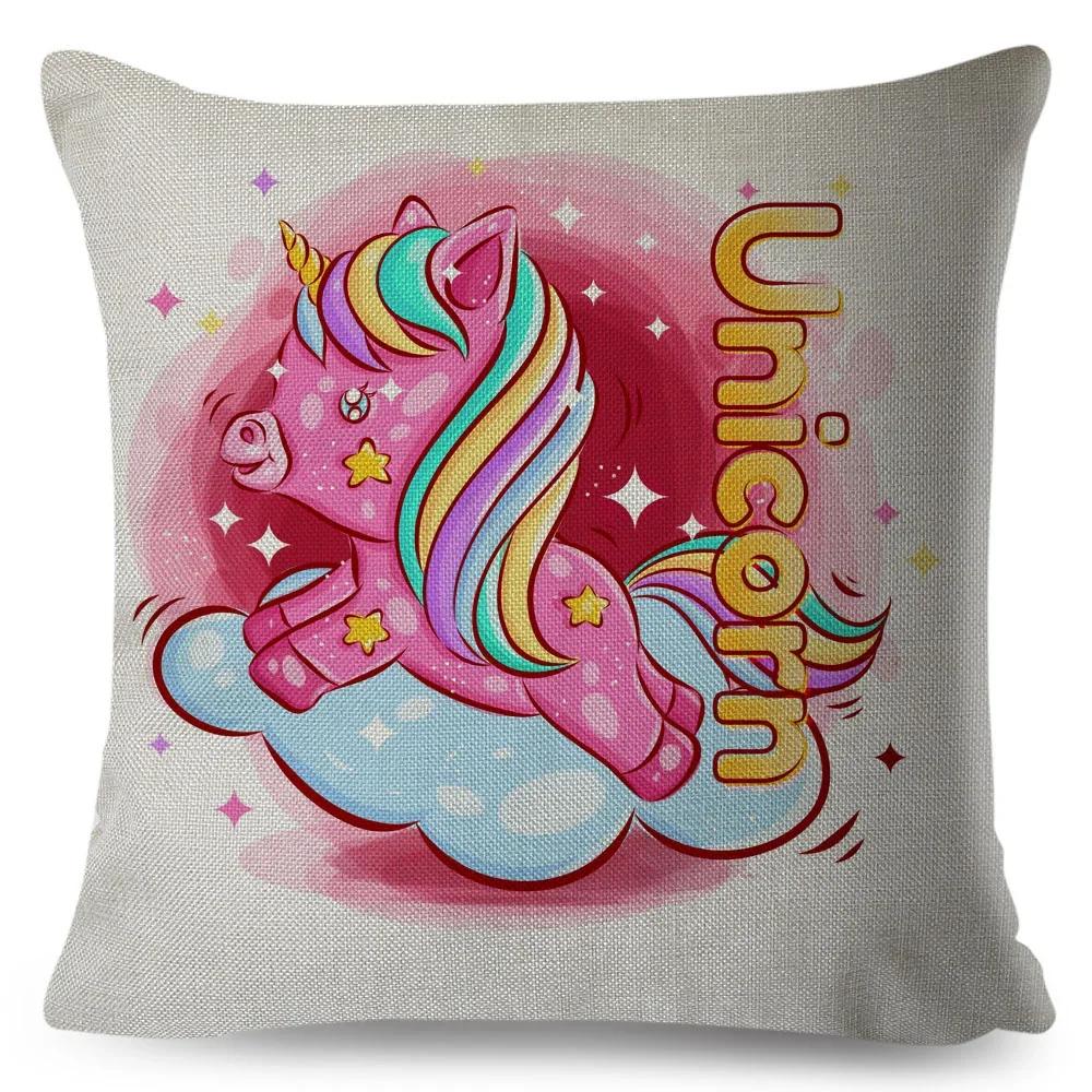 Красочная милая наволочка с животными для дивана, дома, подарок для детей, декор, мультяшный принт с питомцем, единорогом, полиэстеровая наволочка 66x66cm красно-коричневый