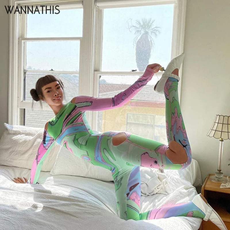 Женский спортивный комбинезон WannaThis Y2K, эластичный Облегающий комбинезон с круглым вырезом и длинными рукавами для фитнеса, повседневная од...