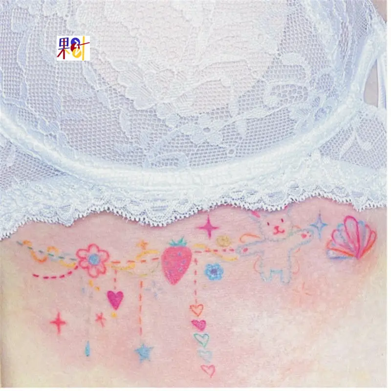 Красочная цепочка, искусственная татуировка, искусственная татуировка для женщин, Мультяшные кисточки, кольцо на руку, художественные татуировки для фестиваля, милые тату-наклейки