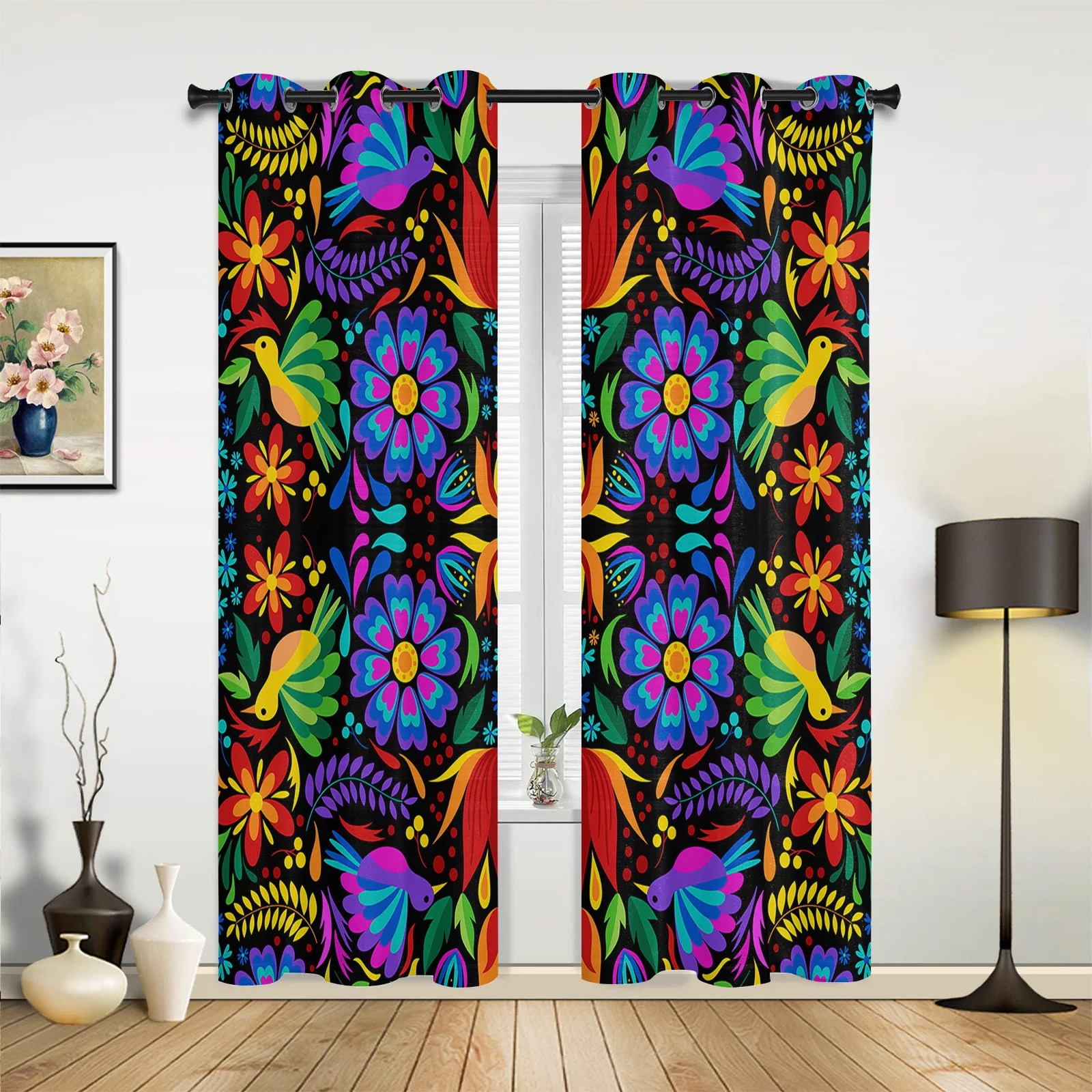 Красочные мексиканские абстрактные цветочные оконные шторы, занавески для гостиной и кухни, Современный домашний декор, занавески для спал...
