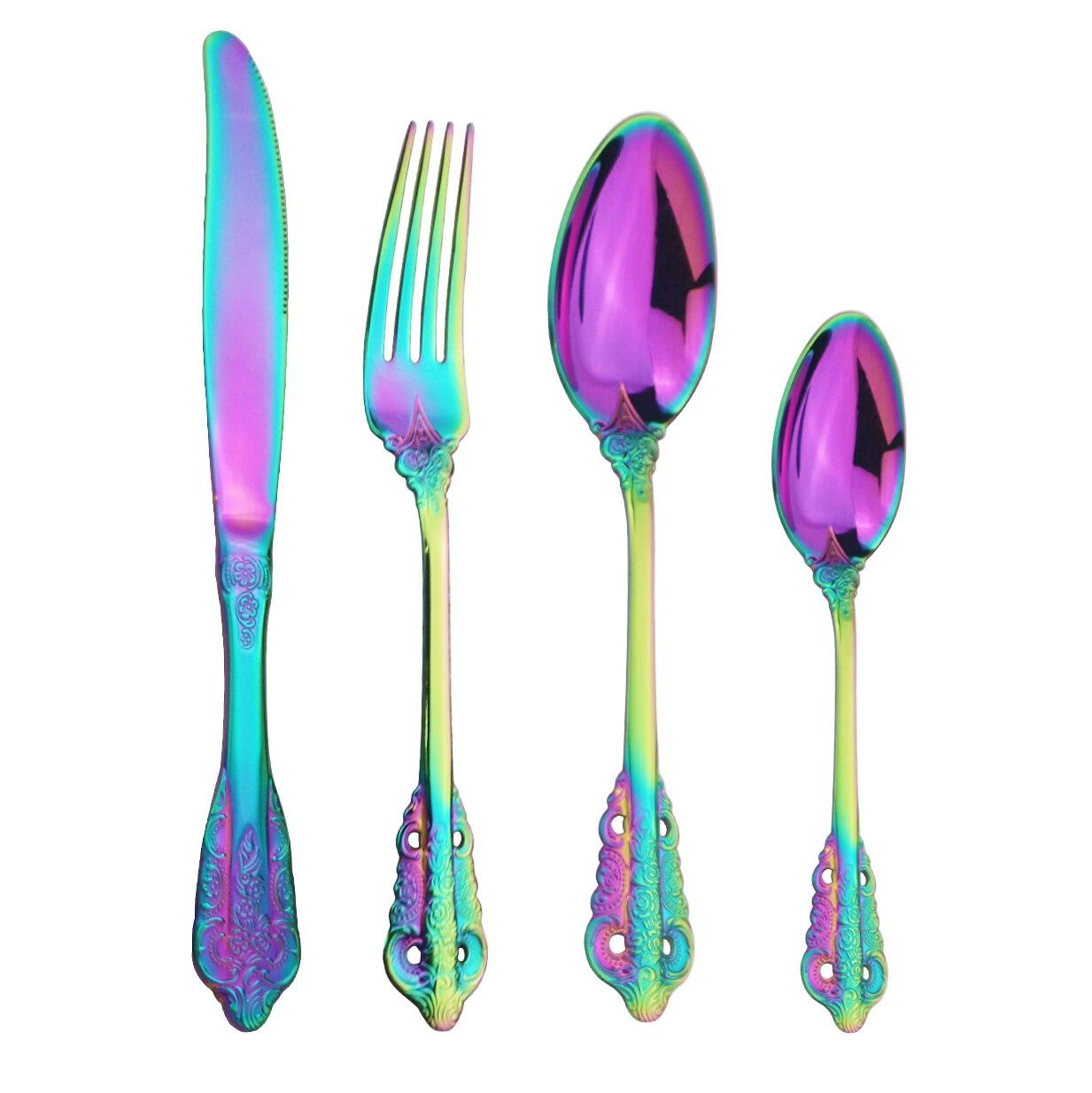Красочные столовые приборы, 16 шт., роскошный золотой набор столовых приборов, набор столовых приборов из нержавеющей стали 304, набор ложек, посуда, вилки, ножи, ложки разноцветный