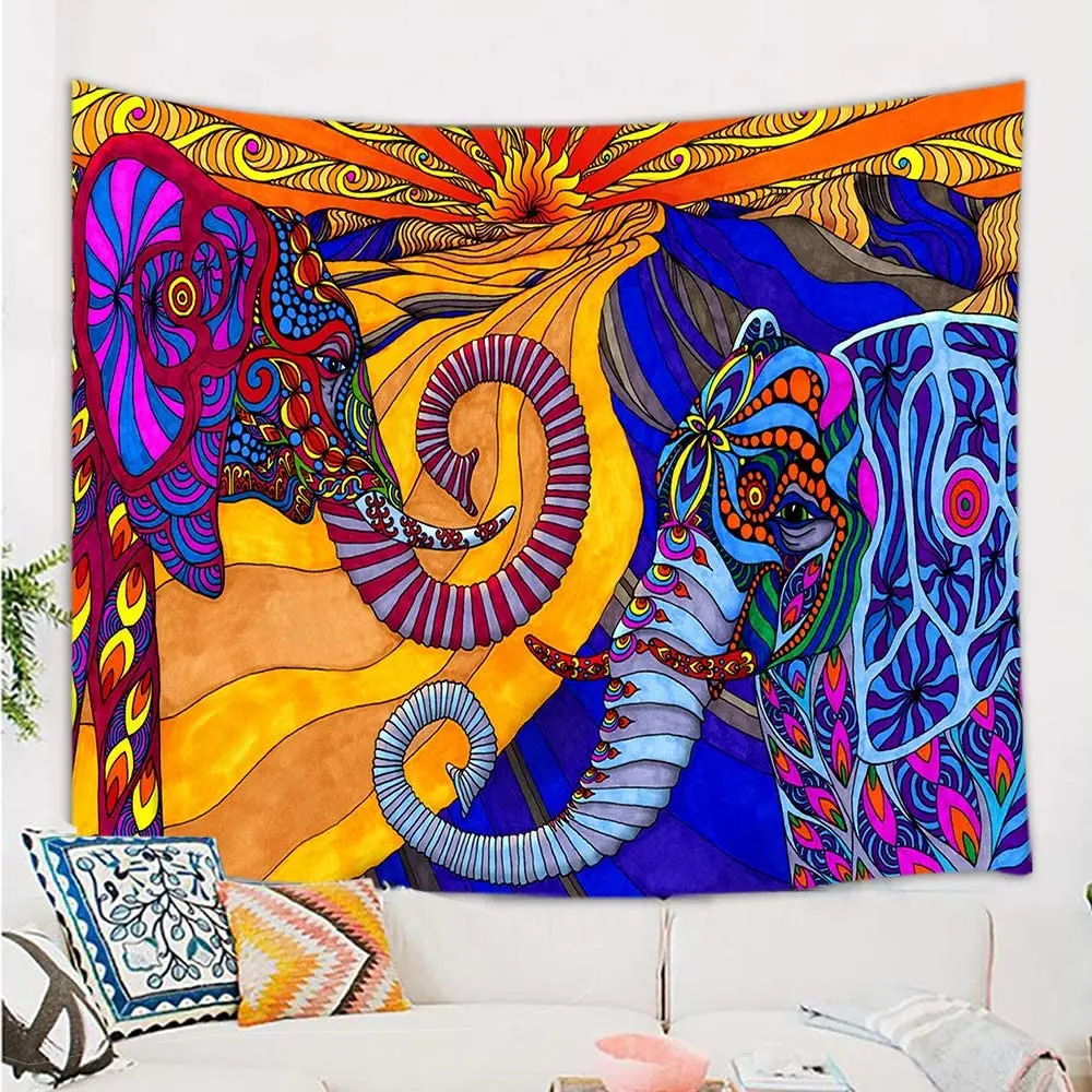 Красочный богемный горный животный психоделический слон гобелен в стиле бохо настенная подвеска