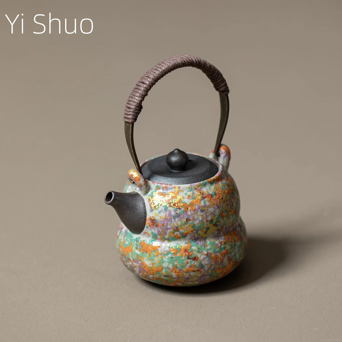 Красочный горшок из камня, минеральный старый каменный грязевой чайник, золотая нить, красочная каменная керамика ручной работы, горшок для заваривания чая, чайник