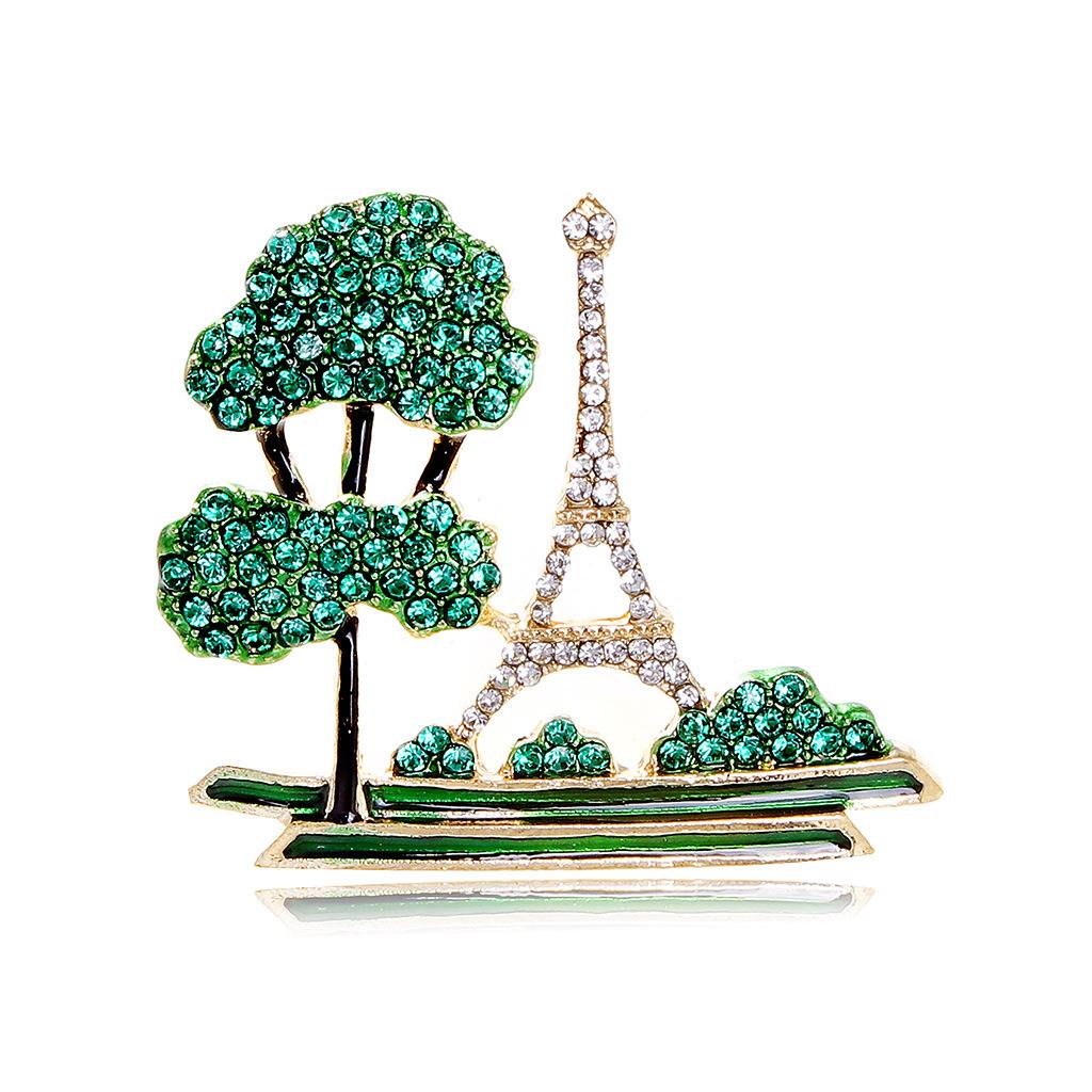 Креативная брошь в виде зеленой башни с бриллиантами, персонализированная зеленая брошь в виде Эйфелевой башни, аксессуары для одежды зелёный