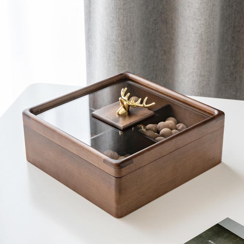 Креативная деревянная квадратная тарелка для закусок с головой оленя, прозрачная стеклянная крышка, разделенная на сухофрукты, конфеты, коробка для хранения, аксессуары для дома