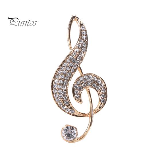 Креативная женская брошь в форме музыкальной ноты, блестящие стразы, инкрустированная булавка, платье, костюм, шаль с лацканами, значок, пальто, аксессуары золотистый