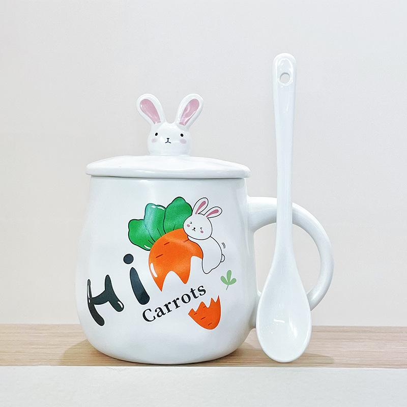 Креативная керамическая кружка «Морковь-кролик» с крышкой и ложкой для домашнего использования, милая и красивая, для питья воды по утрам 301-400ml