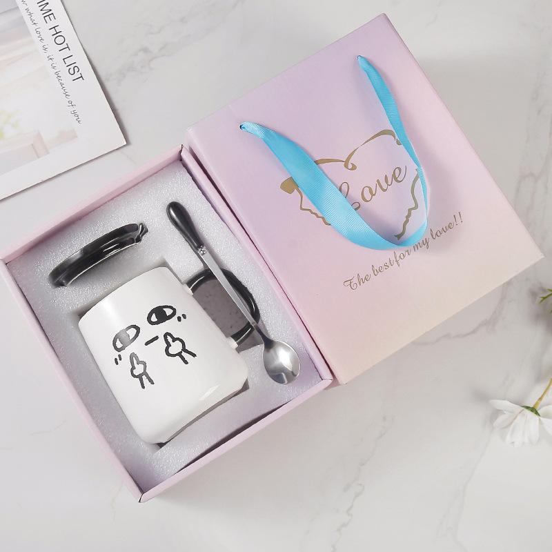Креативная кружка в стиле Инс и с хорошим внешним видом с крышкой и ложкой, милая керамическая чашка для воды, забавный подарок на день рождения, сувенир 401-500ml