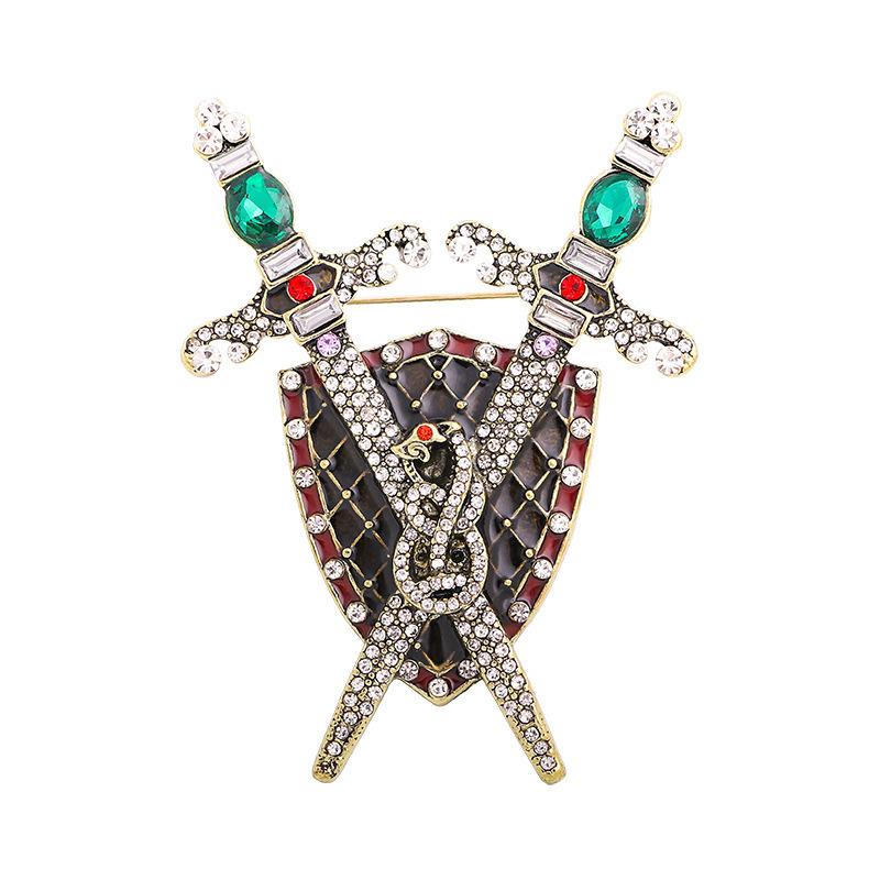 Креативная ретро-брошь в виде меча и щита, аксессуары для значка в западном стиле с бриллиантами