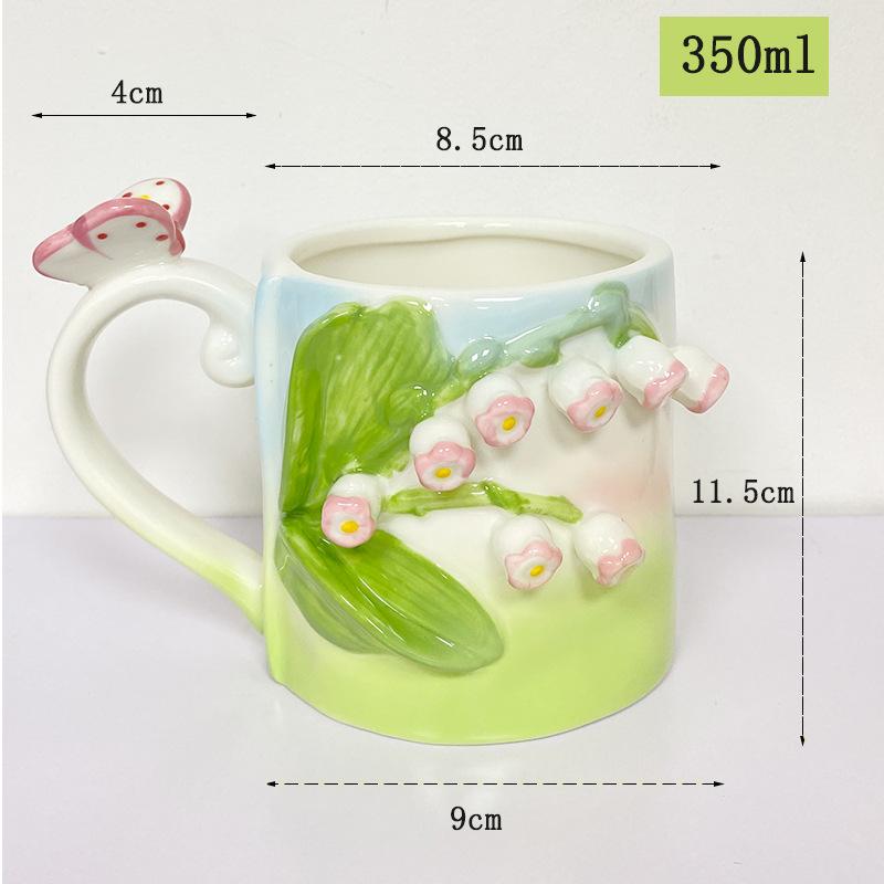 Креативная розовая чашка для кофе из керамики с рельефным изображением тюльпана, подарок для девушки, кружка с цветком, офисная чайная чашка, кружка для завтрака, молока, украшение для дома 350 ML