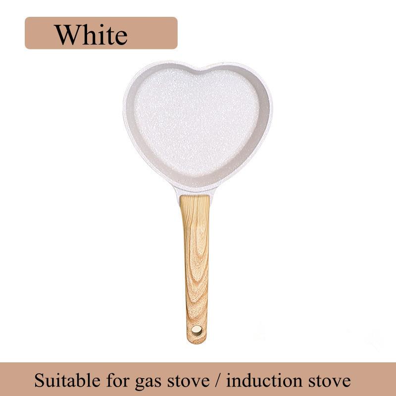 Креативная сковорода в форме сердца с деревянной ручкой, прочная антипригарная сковорода для омлета, блинов, кастрюля для готовки, кухонная утварь, аксессуары белый