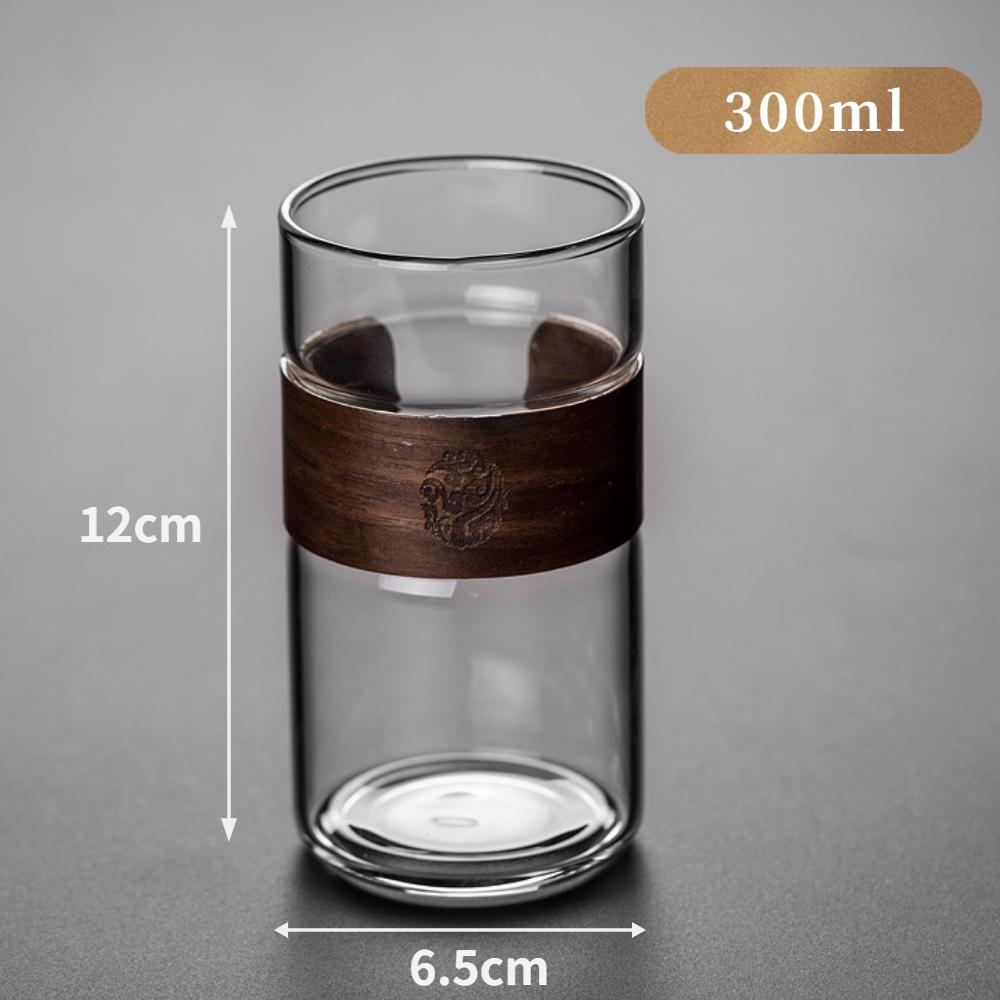Креативная термостойкая стеклянная домашняя чашка для чая в японском стиле с бамбуковой подушечкой для офиса, утолщенная прозрачная чашка для воды, зеленый чай 12x6.5cm 300mlO3j