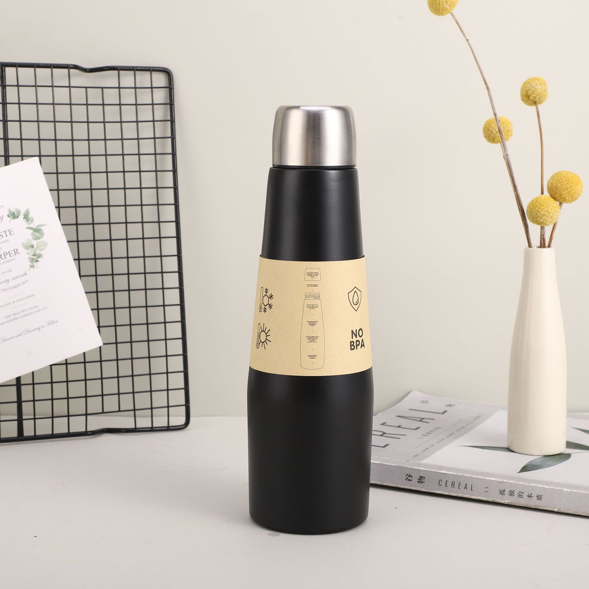 Креативная чашка-термос из нержавеющей стали 304, красивая простая бутылка для кока-колы, портативный спортивный чайник на открытом воздухе 532ml чёрный