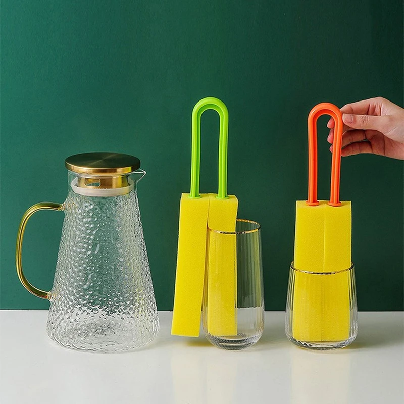 Креативная U-образная Расширенная ручка, щетка для мытья чашки, двусторонняя мягкая щетка из губки, щетка для детских бутылочек, кухонный ин...