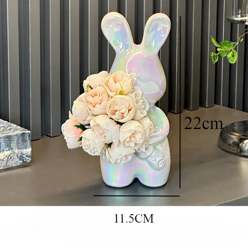 Креативное искусство, держащее вазу с кроликом, роскошная ваза, украшения для гостиной, цветочная композиция, украшение рабочего стола, подарок на новоселье