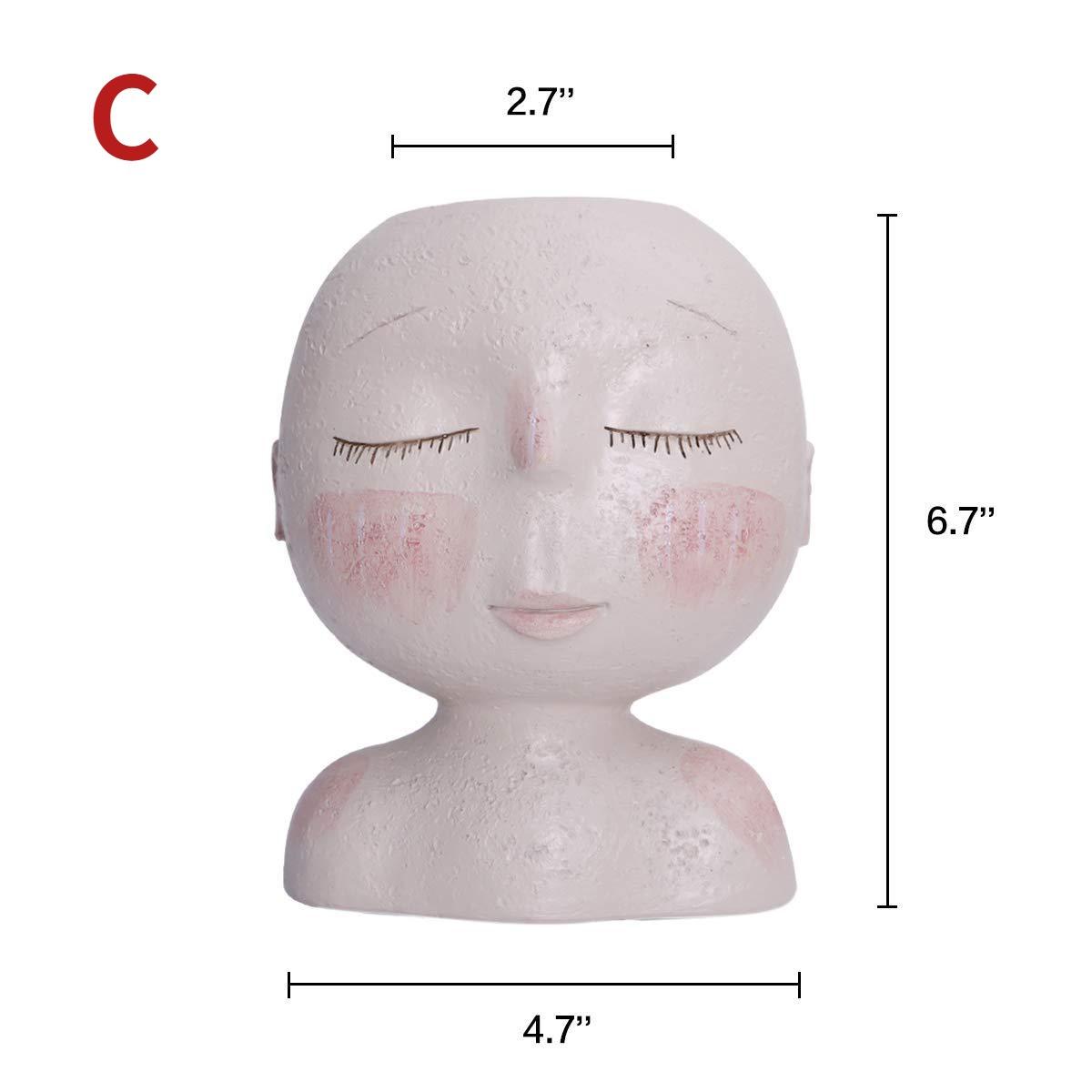 Креативное лицо Цветочный горшок Голова Кашпо Горшок Суккулент Кашпо Искусство Статуя Скульптура Горшечные Декоративные Украшения Ваза C