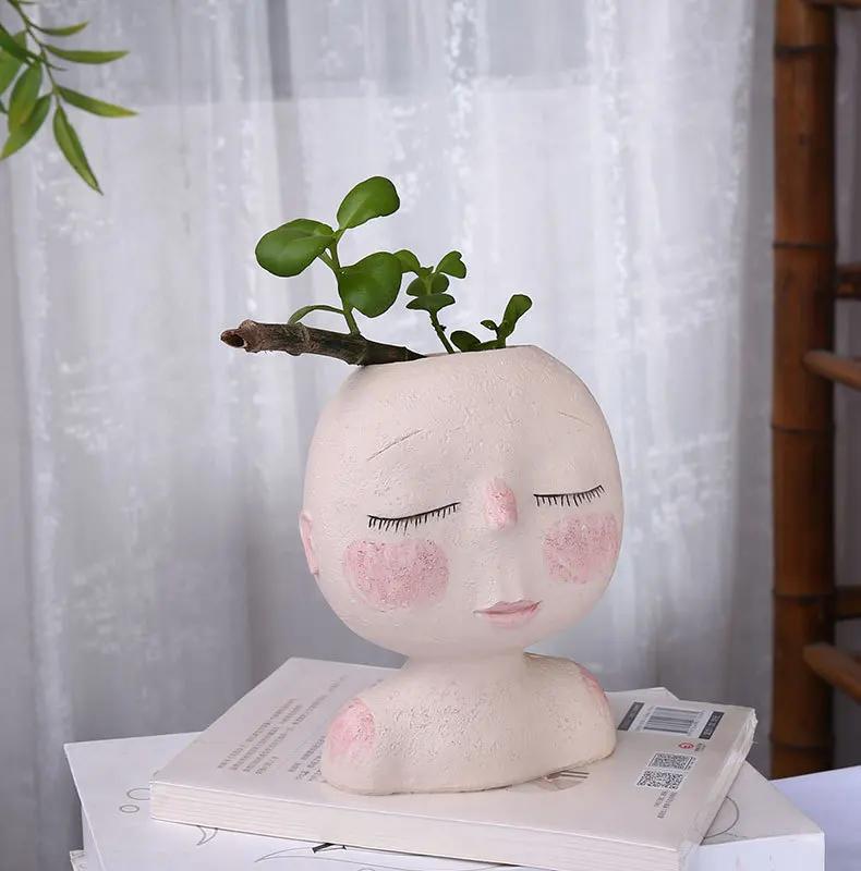 Креативное лицо Цветочный горшок Голова Кашпо Горшок Суккулент Кашпо Искусство Статуя Скульптура Горшечные Декоративные Украшения Ваза