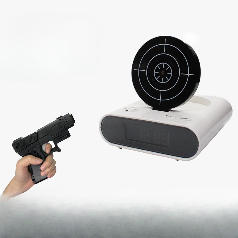 Креативный будильник «Стреляй в цель» Роман «Игрушка для стрельбы» Спальня Ленивый человек просыпается Будильник Украшение гостиной белый