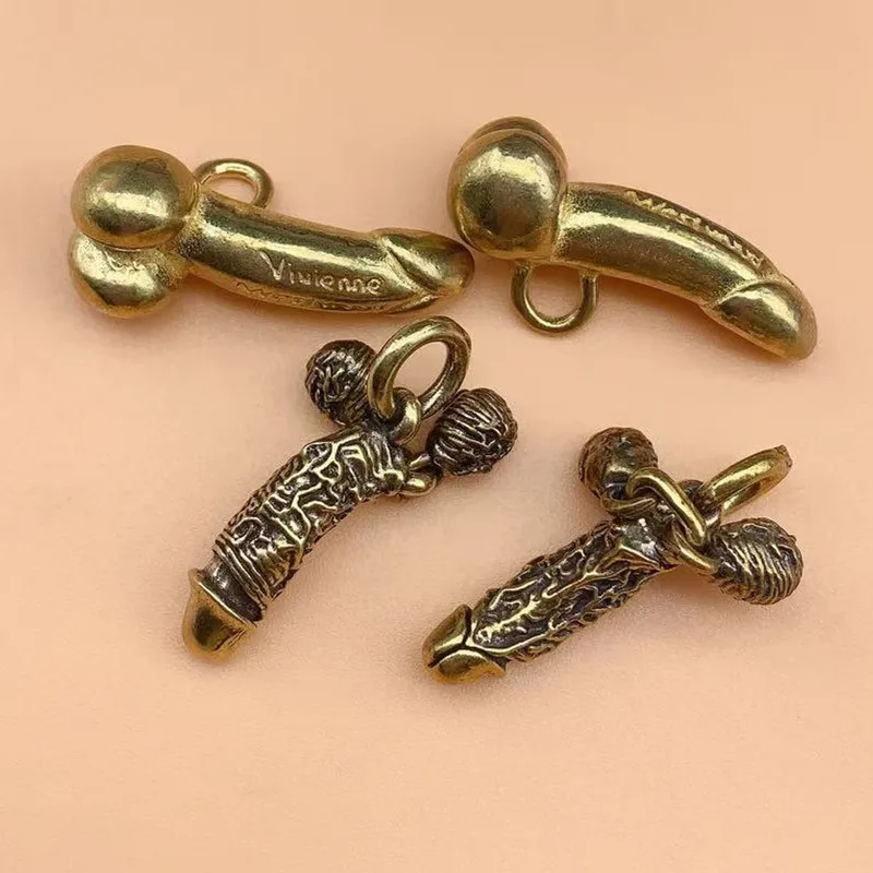 Креативный латунный мужской брелок с кулоном в виде пениса, забавная имитация цыпленка, индивидуальный кулон, миниатюрные мужские гениталы, брелок для автомобиля