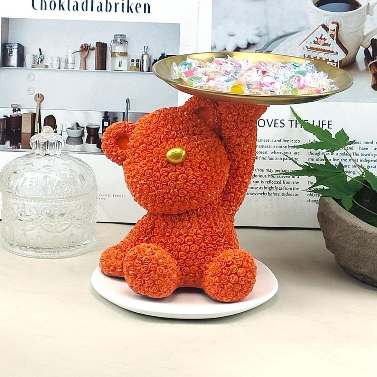 Креативный свет Роскошный свирепый медведь с розовым орнаментом Поднос для хранения Гостиная Спальня Винный шкаф Украшения Роскошный орнамент оранжевый