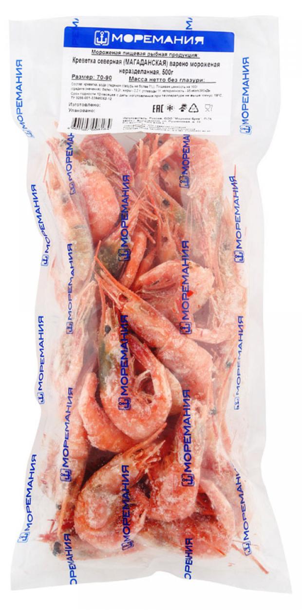 Креветка магаданская «Моремания» с головой варено-мороженая, 500 г