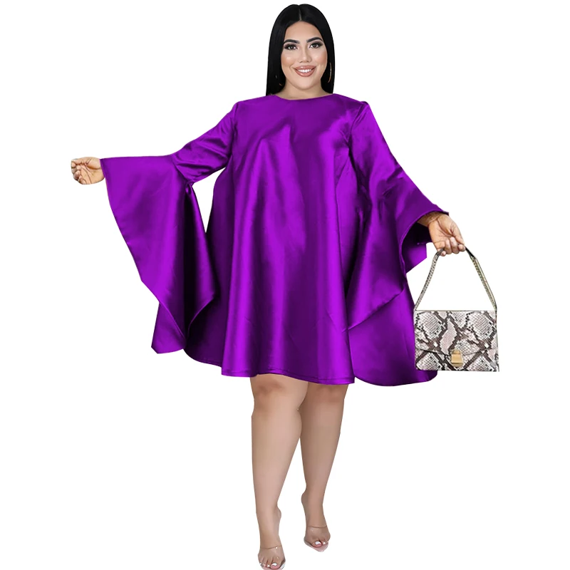 Spring Autumn Long Flare Sleeve Dress Ladies Purple Elegant Dashiki Solid Color African Dresses For Women Robe Africa Clothing