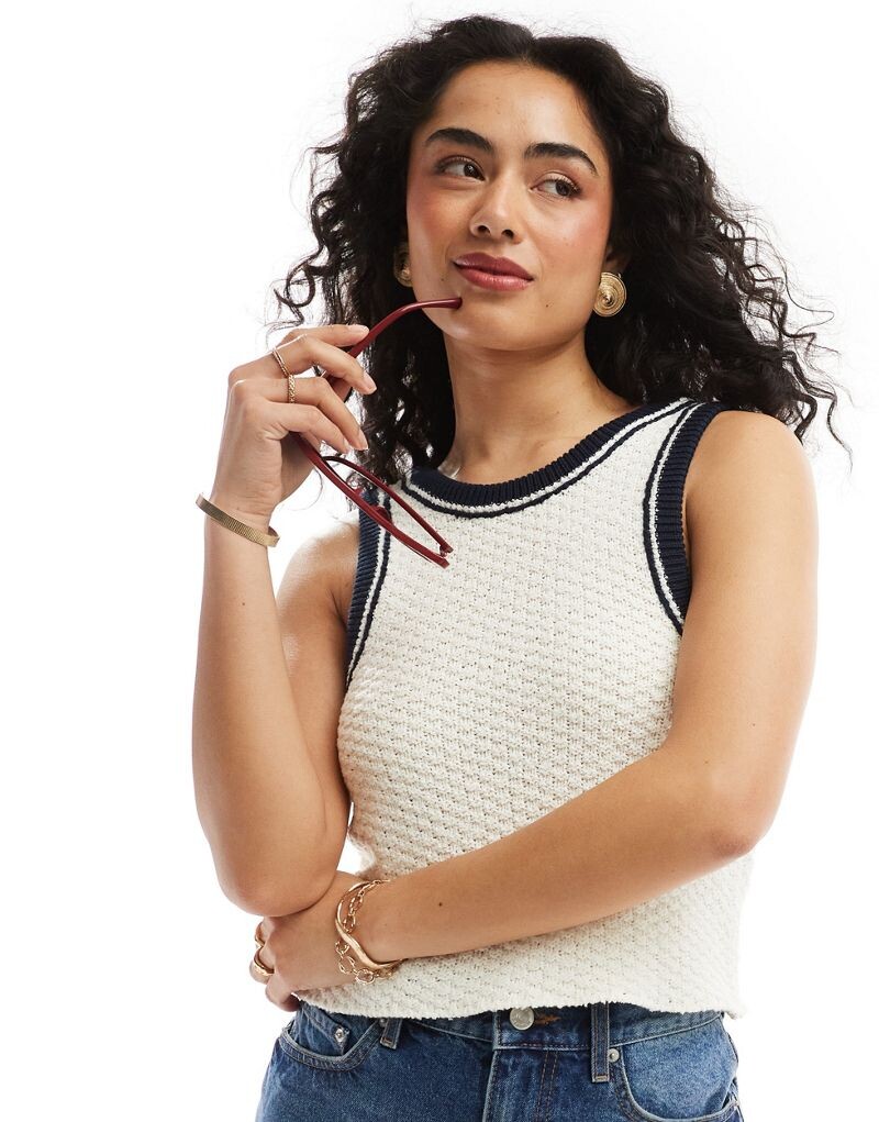 Кремовая текстурированная трикотажная майка с контрастной окантовкой и круглым вырезом ASOS DESIGN