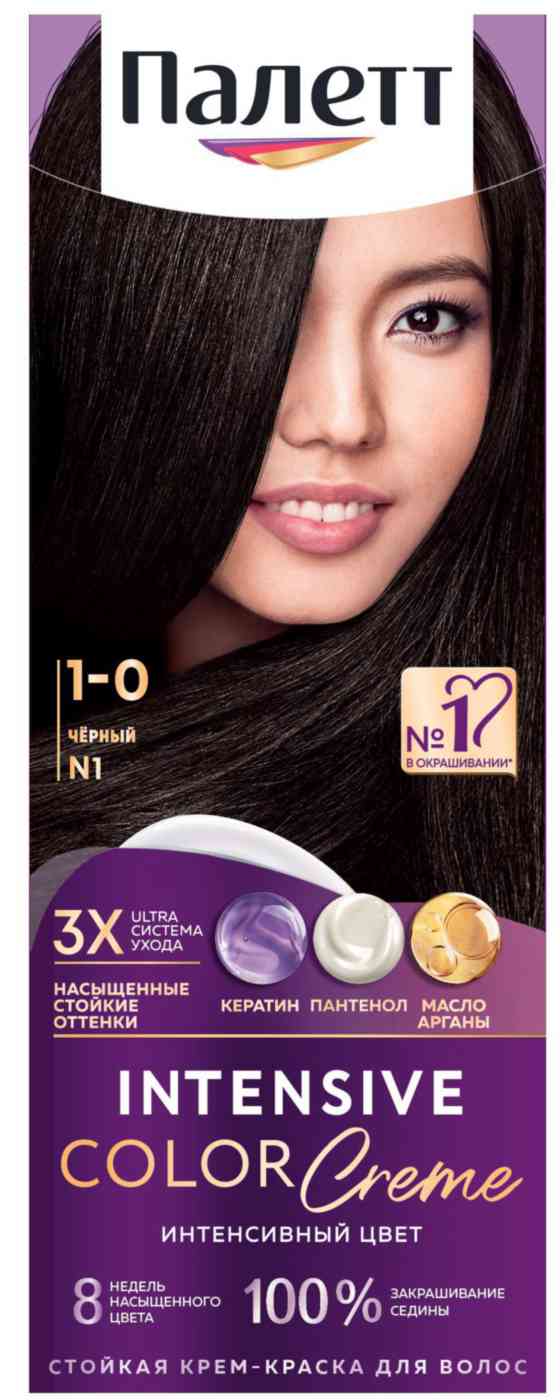 Крем-краска для волос стойкая Палетт Интенсивный цвет 1-0 Черный