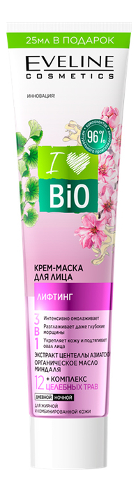 Eveline крем-маска для лица лифтинг i love bio + комплекс 12 целебных трав 125мл купить по выгодной цене в интернет-магазине профессиональной косметики, смотреть фото и отзывы на Randewoo.ru