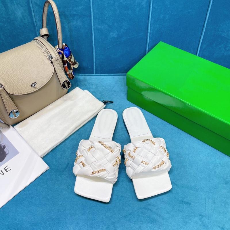 Slippers 2021 Est Summer Shoes Woman Outdoor Sildes Microfiber Leather Weave Many Chain Decora, As pic