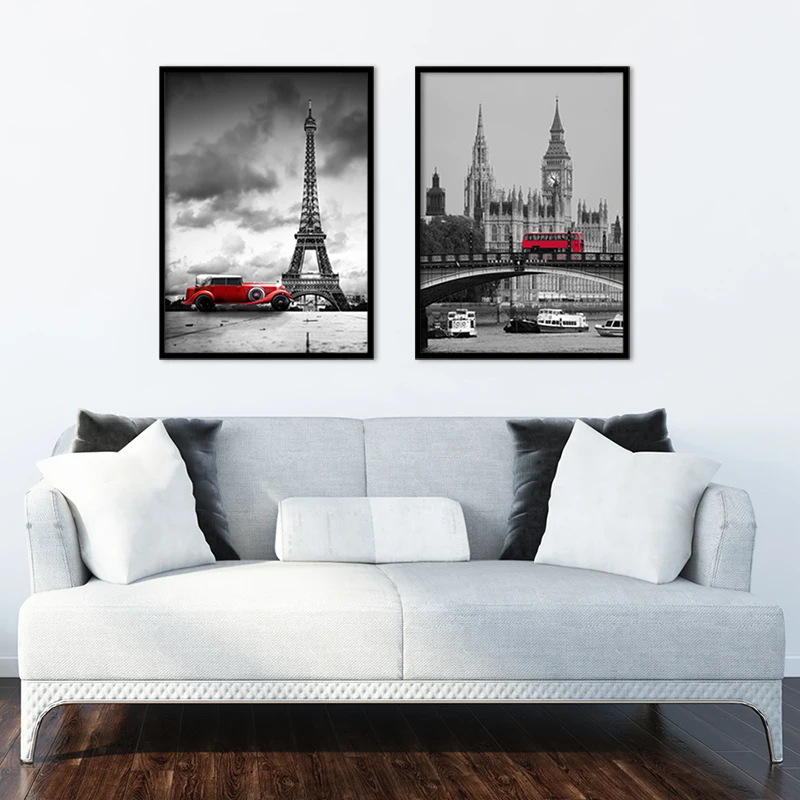 Modern City Tower Bridge Red Bus Black White Picture Posters Canvas Painting Print Wall Art For Living Room Bedroom Home Decor