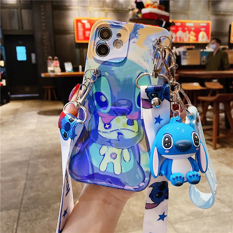 Disney Stitch Figure with Keychain Phone Cases For iPhone 13 12 11 Pro Max Mini XR XS MAX 8 X 7 SE 2020 Back Cover