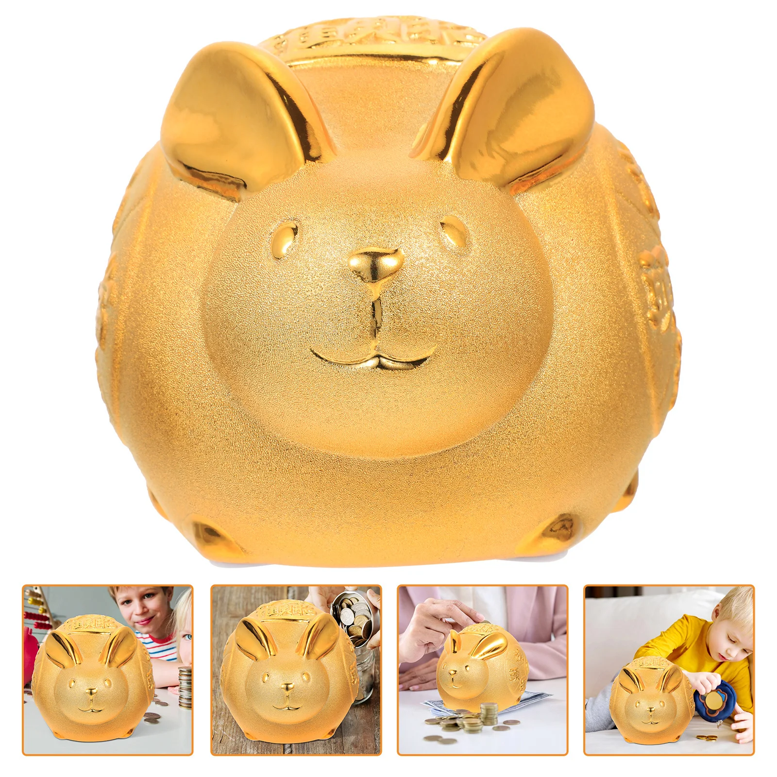 Rabbit Year Cute Bunny Piggy Bank Ceramic Kids Saving Pot Bedroom Desk Decor Gift Cartoon Coin Bank Bunny Decor