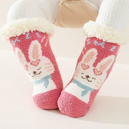 AURIGATE Clearance! Baby Non Slip Socks Toddler Boys Girls Solid Color Cartoon Socks Keep Warm Plush Kids Soft Non-slip Indoor Toddler Socks