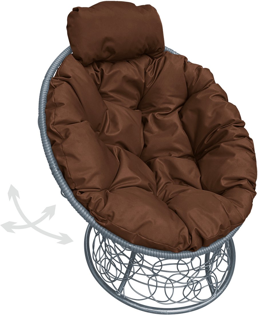 Кресло M-Group Папасан пружинка мини 12090305 (серый ротанг/коричневая подушка)