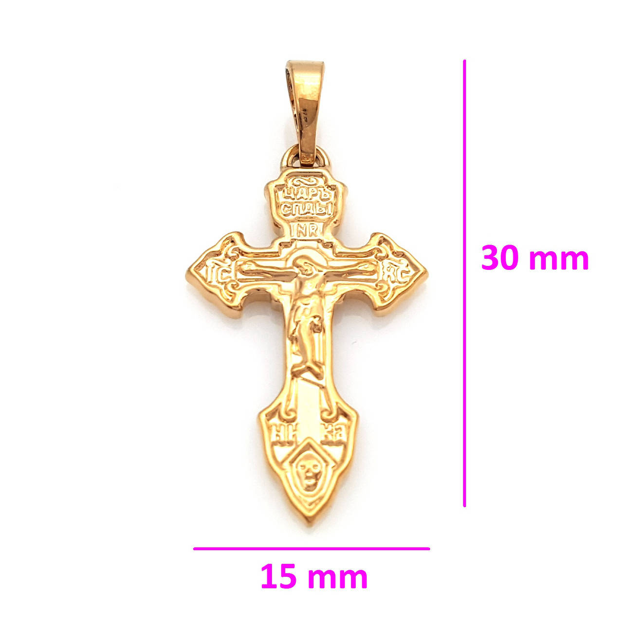 Крестик позолоченный с распятием, без камней, медзолото, 18К