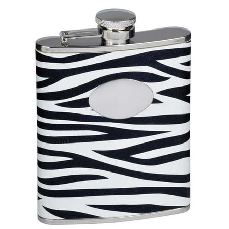 Visol VF1221 Visol Zebra Black & White Leather Stainless Steel Liquor Flask - 6oz