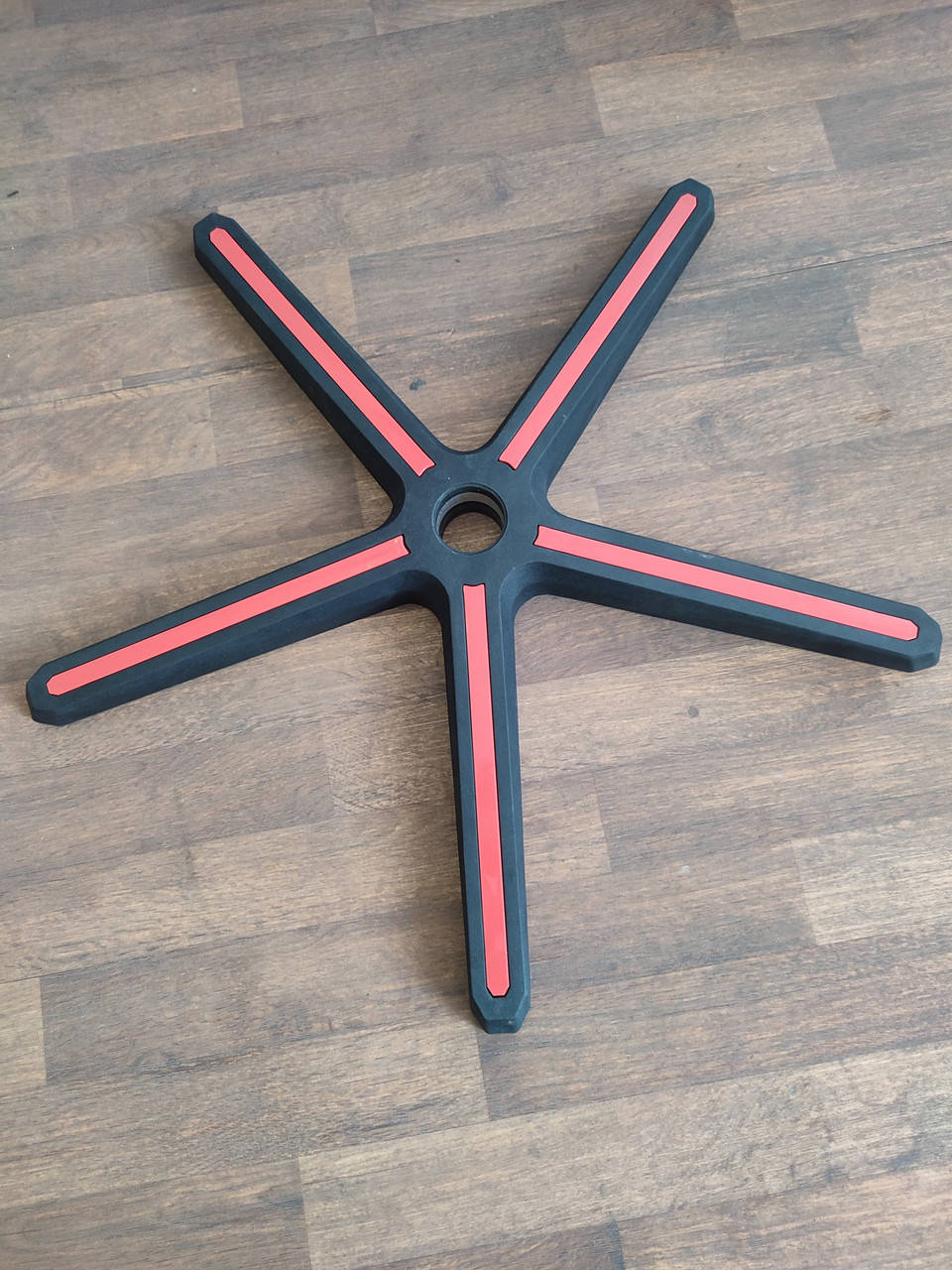 Качественная крестовина для игрового кресла. Сделана из прочного пластика, в центре усилена металлическим кольцом. Под колеса со штоком 11мм.