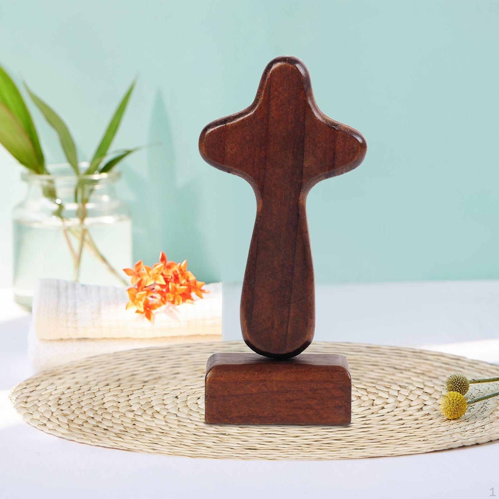 Крест Статуя Деревянная Статуэтка Маленькая Подарочная Коллекция с Базой Скульптурное Украшение для Спальни Офиса Dark Brown