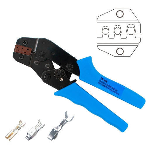 Кримпер клещи для обжима опрессовки наконечников клемм 0.5-1.5мм SN-48BМеханический инструмент с храповым механизмом SN-48B для опрессовки кабельных наконечников.Рекомендован производителем для неизолированных ножевых наконечниковОбжимаемое сечение: 0.5; 1; 1.5 мм2 (20-16 AWG)Храповой механизм; который обеспечивает полный цикл опрессовки и блокирует рычаг при обратном ходеРегулятор прижимного усилияРычажек разблокировки храпового механизма (на случай ошибочного выбора наконечника или разъема)Сменная матрицаМатериал инструмента: металлМатериал ручек: качественный пластикРазмер инструмента в сложенном состоянии: 19.5 х 7.5 х 1.85 см