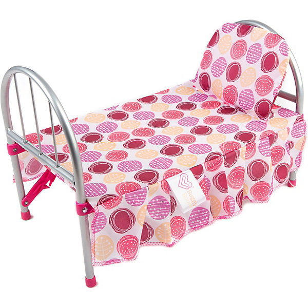 Кроватка имеет красивый цвет и стильный дизайн. Игрушка сделана прочной и устойчивой. Для создания кроватки были использованы качественные материалы безопасные для ребенка. Каркас изделия облегченный, чтобы кроватку можно было легко передвигать. Ткань легко мыть от загрязнений.