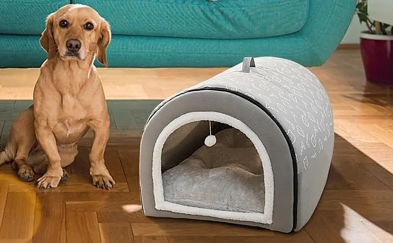 Кровать-домик для кошек в виде пещеры для домашней съемной кошачьей кровати с подвеской-шариком